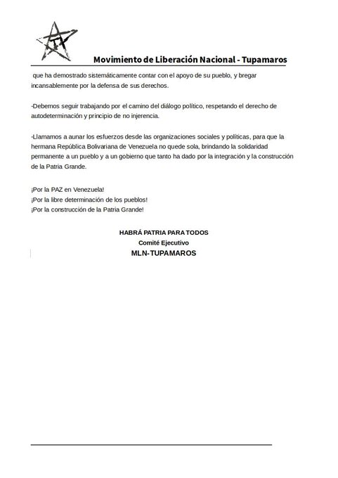 Digno pronunciamiento del Movimiento Tupamaros de Uruguay, apoyando el respeto a la soberanía, la Paz y el diálogo en Venezuela