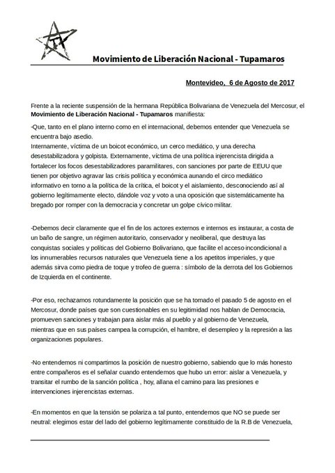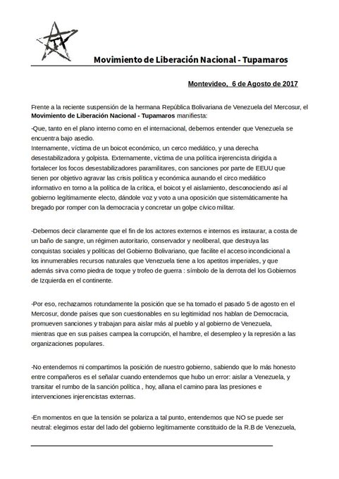 M.L.N.-TUPAMAROS @mlntupamarosuyMdeo, 6 de Agosto de 2017